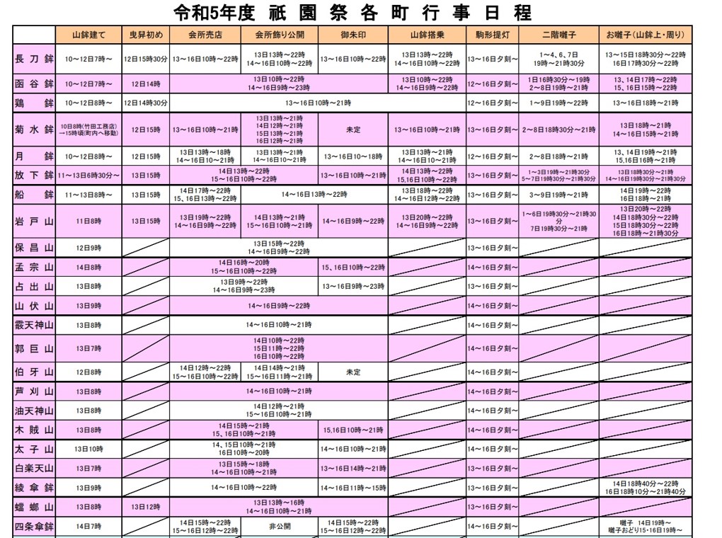 - 各山鉾町会(前祭の山鉾は全23基)